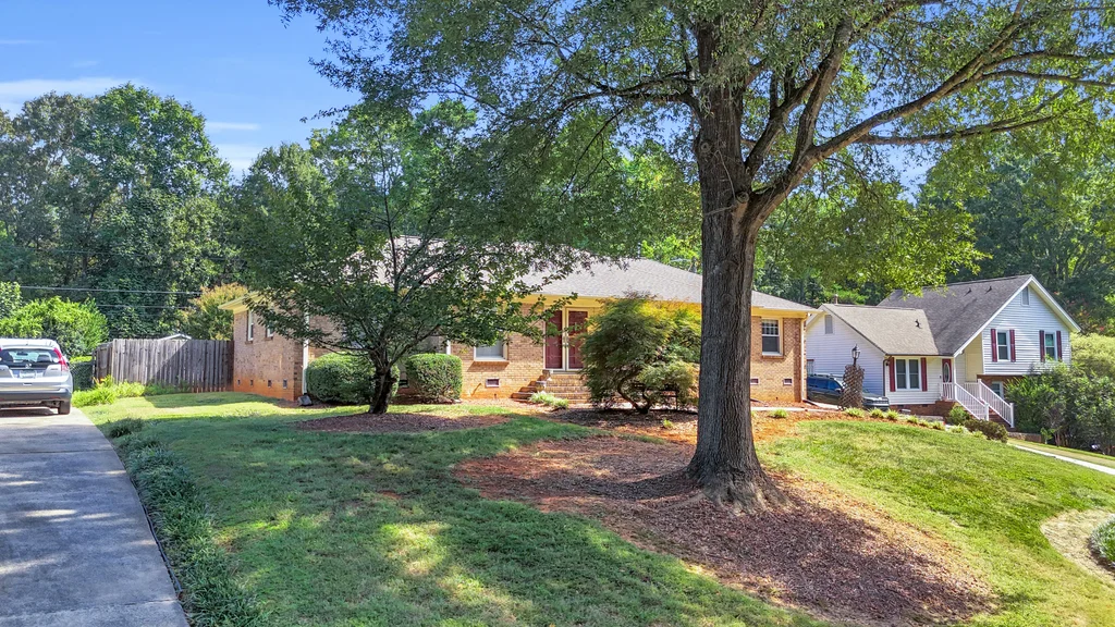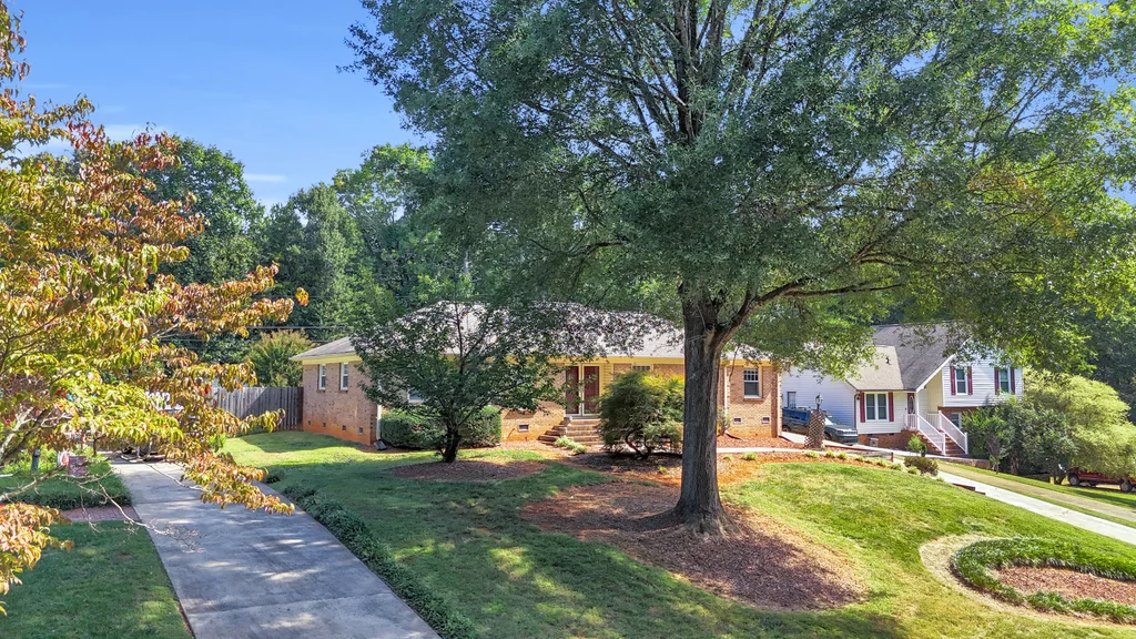 Charming full-brick ranch in the established Idlewood neighborhood! This 3-bedroom, 2-bath home offers 1,807 sq. ft. of single-level living on a 0.34-acre lot. Inside, enjoy an open-concept layout with a cozy brick fireplace in the den, wood floors, and a newly updated kitchen with adjoining dining area. A new gas water heater (2025) adds peace of mind. Additional highlights include a buyer home warranty, a gated 2-car carport, storage shed, and no HOA. Conveniently located minutes from I-485, shopping, and schools, with an easy commute to Uptown Charlotte. A rare Matthews/Mint Hill opportunity combining space, privacy, and long-term value!